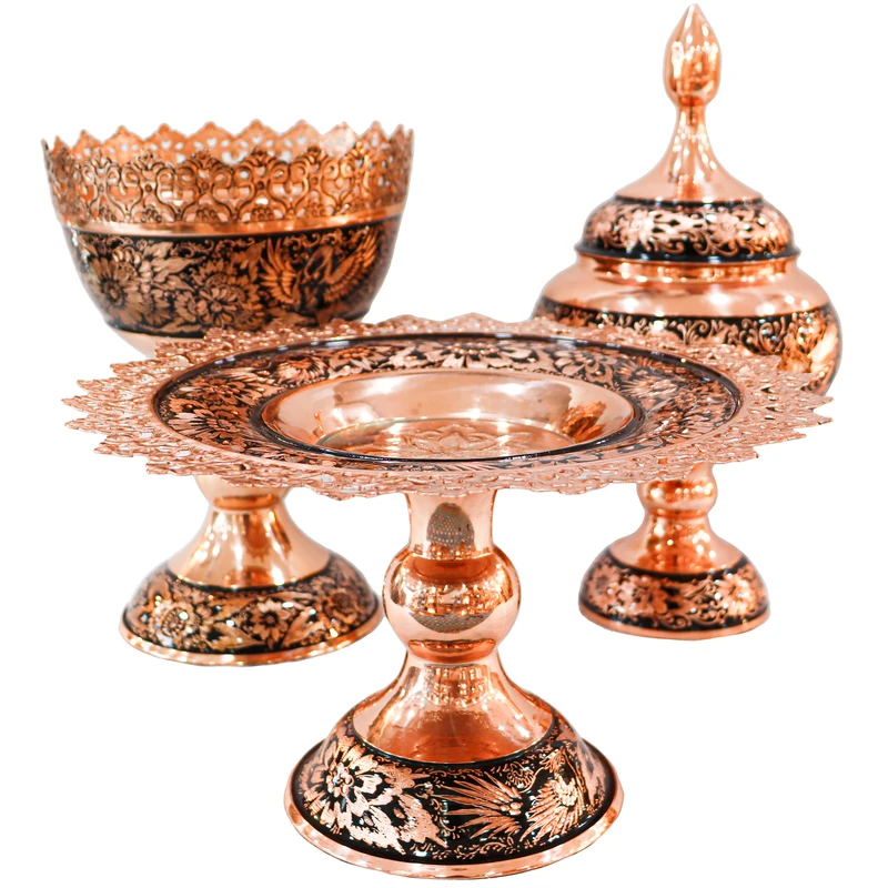 ست 3 تکه پذیرایی مسی مدل الماس تراش