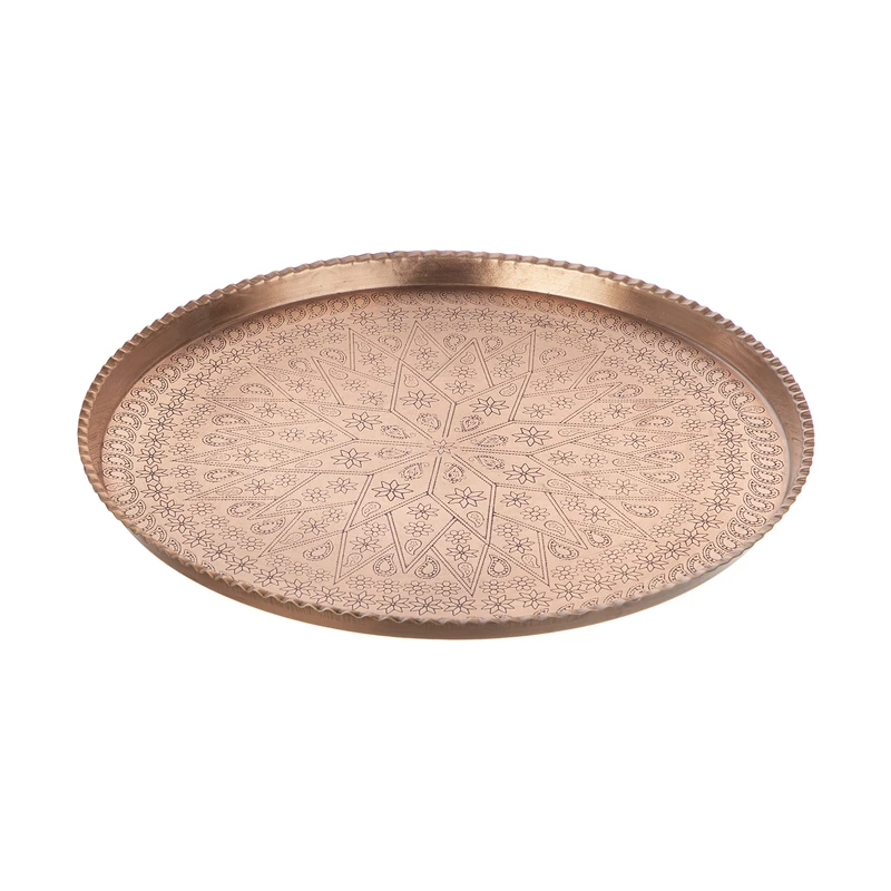 اگر از جمله افرادی هستید که با استفاده از سینیهای مسی و لوازم سنتی، احساس رضایت میکنید، این سینی رضایت شما را جلب خواهد کرد. داخل سینی دارای نقش و نگار از نوع قلم زنی بوده و طرحی ظریف دارد. داخل شیارها توسط رنگ مشکی پر شده تا جلوه و زیبایی سینی مسی مس زنجان بیشتر باشد. سینی مسی که مشاهده میکنید دارای برند مس زنجان است که یکی از برندهای معروف و شناخته شده خواهد بود.