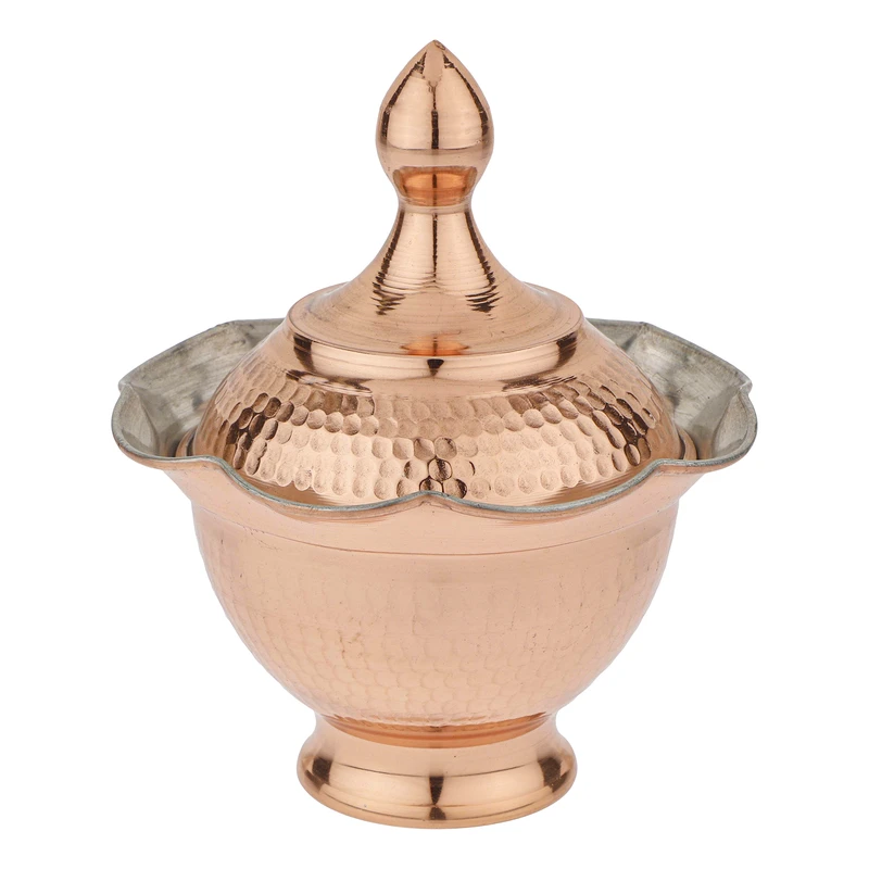 وجود چکش کاری روی بدنه قندان نیز جزئی از طراحی زیبا آن است و به قندان شکل و الگویی منحصر به فرد می بخشد. سازنده این قندان مسی ایران است و همانطور که میدانید کشور عزیزمان در تولید محصولات مسی زبانزد است.
