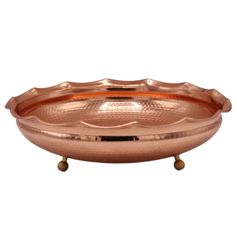 میوه خوری سه پایه مسی که با ورق درجه یک و با ضخامت یک میلیمتر ساخته شده است.